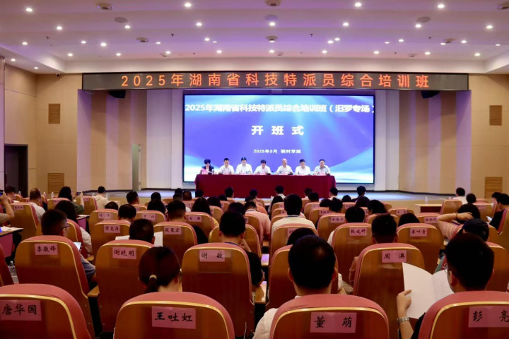 人民网长沙5月17日电5月15日,2025年湖南省科技特派员综合培训班(汨罗专场)在汨罗弼时学院正式开班,来自全省14个市州的120余名科技特派员代表和科技特派员工作负责人参加集中学习。